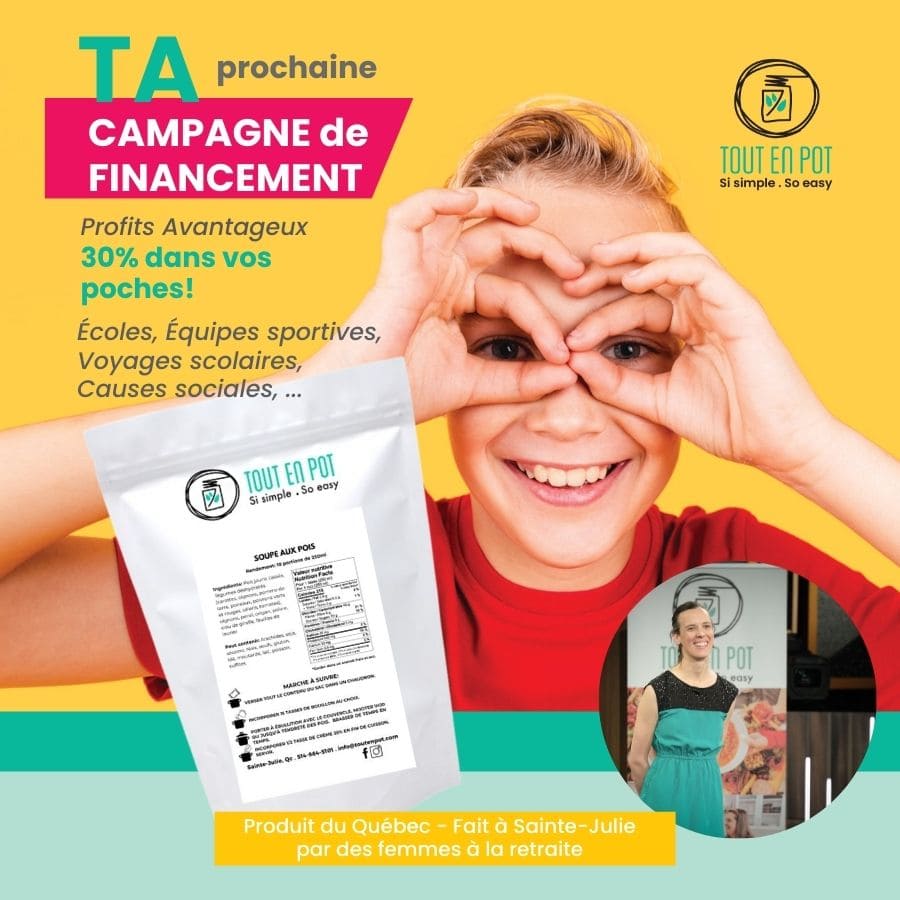 Tout en Pot est LA solution qui vous permettra d’atteindre vos objectifs tout en appuyant une entreprise de chez nous. Une campagne de financement avec nos produits, c’est un succès assuré! Chez Tout en Pot, notre équipe est là pour vous accompagner tout au long du processus et vous offrir un service clé en main!